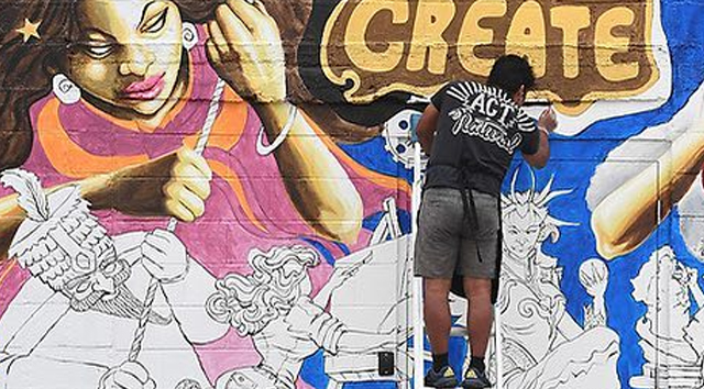 With the firm belief that art is a responsibility and not a privilege, public art is the reflection of our community, our history, and our beliefs. In this way, we manifest ourselves, we tell our stories. Through murals, we spark a dialogue with our community. What x3mex aims to achieve is to visually communicate our presence, a reaction to our situation, our history; to educate and influence those who are not aware, and hopefully gain a better understanding of our society, and of ourselves, sparking communication through the manipulation of color, perspective, form, and imagination.