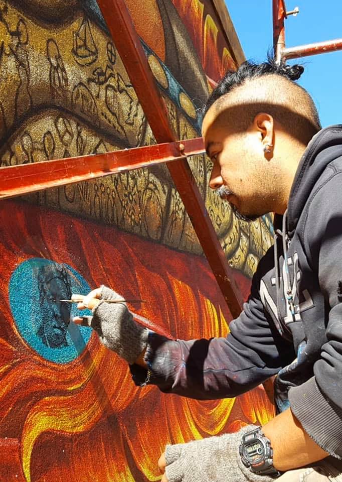 After majoring in Classical Studies and working as a bookbinder and restorer of antique books in Mexico City, Logo turned completely to the visual arts about 6 years ago, interested particularly in muralism and public art. Logo´s artwork explores diverse techniques and topics including graphic novels and printmaking, sculpture and installation. His latest mural project “Athena” is the first anamorphic 3D mural in NWA and his biggest in the USA. As an international artist living in Fayetteville, Arkansas for the last 4 years, Logo´s work spans multiple solo and collective exhibitions, murals, public paintings and collaborations. He is the recipient of the Artist 3 60 grant for 2019 with a multimedia project call EXODUS and is cofounder of the Fenix Gallery in downtown Fayetteville. He lives happily with his wife and their dog in South Fayetteville, for now.