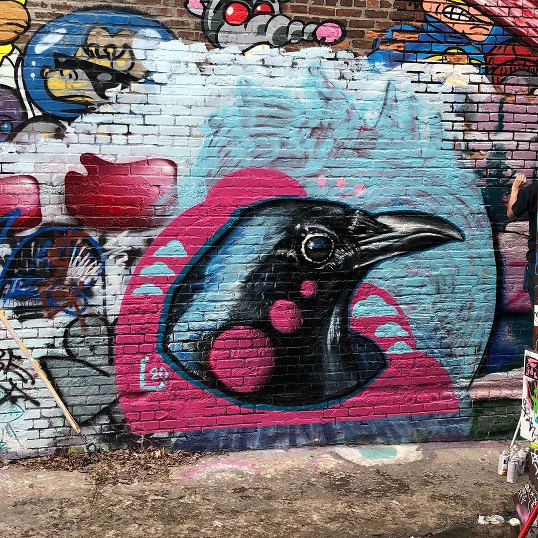 Growing up in Bentonville, AR, Zachary Laman started pursuing painting at a young age, inspired and encouraged by his family full of artists. He moved to Kansas City, Missouri in 2004 and quickly became involved in the local art scene. These days, Laman is becoming one of the most prominent mural artists working in Kansas City. Laman’s large scale mural work features a meticulous, visual collage of portraits and creatures mixed with his unique personal style, all executed with freehand spray paint on a colossal scale. Some of his most notable murals can be found in The Truman Kansas City, inside Parlor KC, and Hotel Indigo. Zachary Laman is one of three artists chosen to participate in the revitalization of The Kansas City Museum. In the meantime, Laman encourages a new generation of artist including his young daughter who is already showing signs of following in his footsteps.