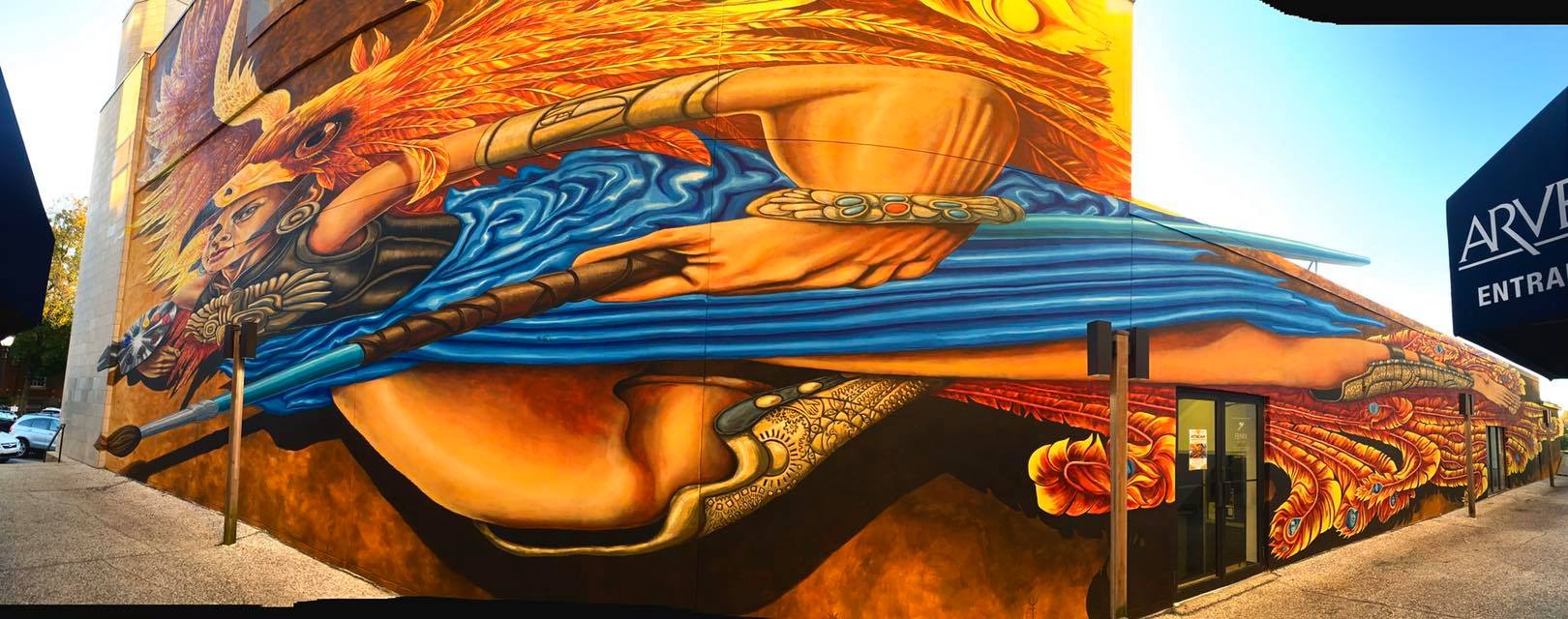 The 2020 team of Sprayetteville artists is a phenomenal group of professionals and freelancers from Fayetteville, AR, and surrounding regions who work in the area of public art and murals. Ranging from individuals who have been creating on the scene for decades, to those who are newer to the life of mural-making, these talented artists are highly esteemed for enlivening the city with beautiful bursts of color and thought-provoking visual aesthetic. Keep scrolling to see a gallery of work by the artists, as well as individual artist bios with links to stay connected with their art pages.